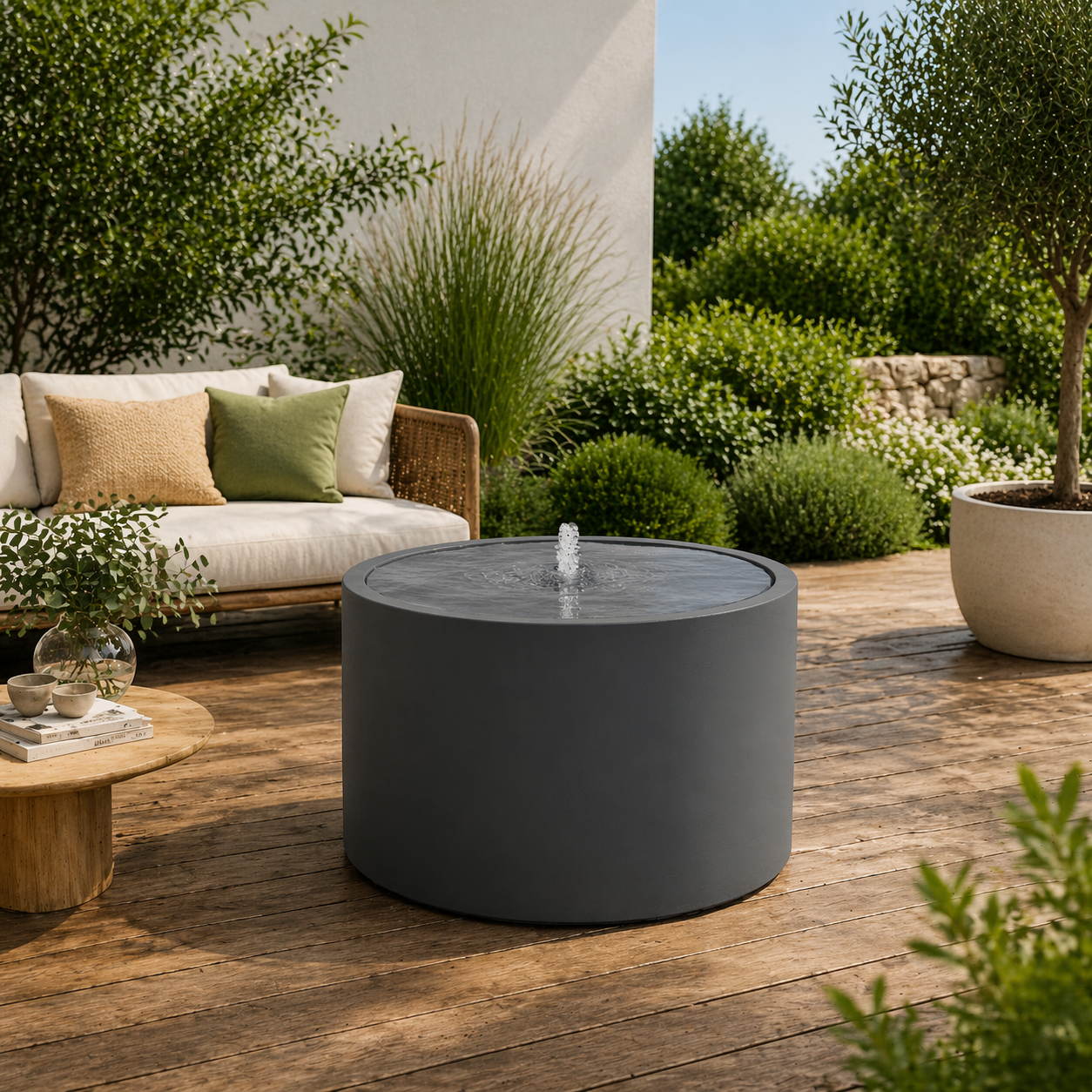All our plant containers are handmade, creating unique pieces. They are valued for their durability against outdoor wear and tear: the polyester resin is colored throughout for better scratch resistance, and the 3 mm thick walls provide good frost protection.