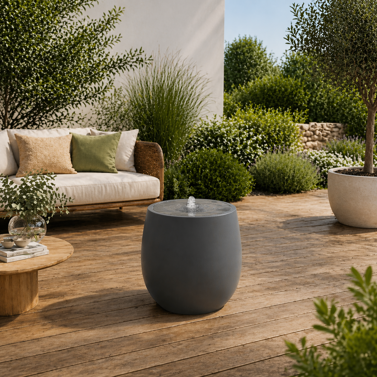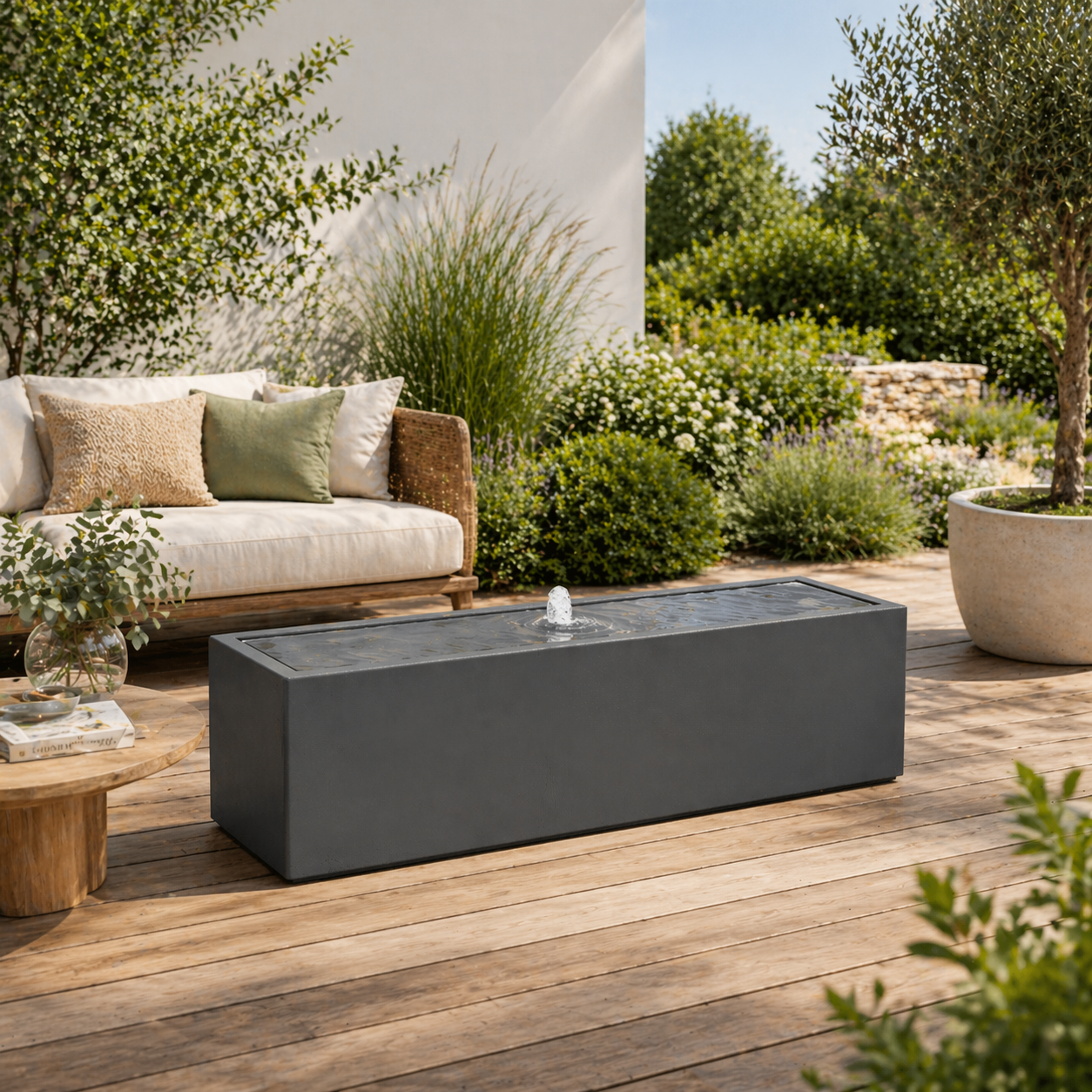 All our plant containers are handmade, creating unique pieces. They are valued for their durability against outdoor wear and tear: the polyester resin is colored throughout for better scratch resistance, and the 3 mm thick walls provide good frost protection.